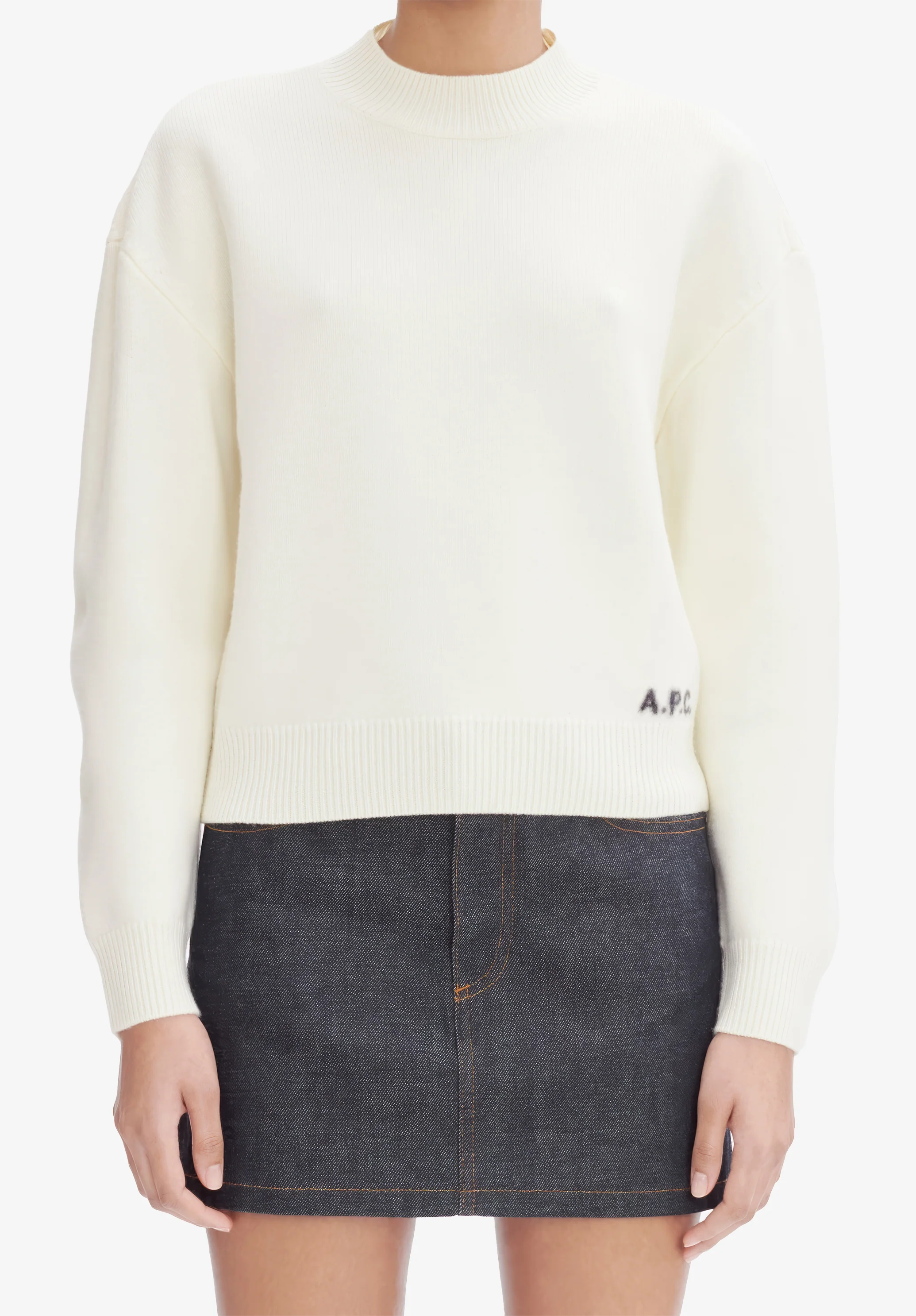 - Contrasting A.P.C. logo at lower left.