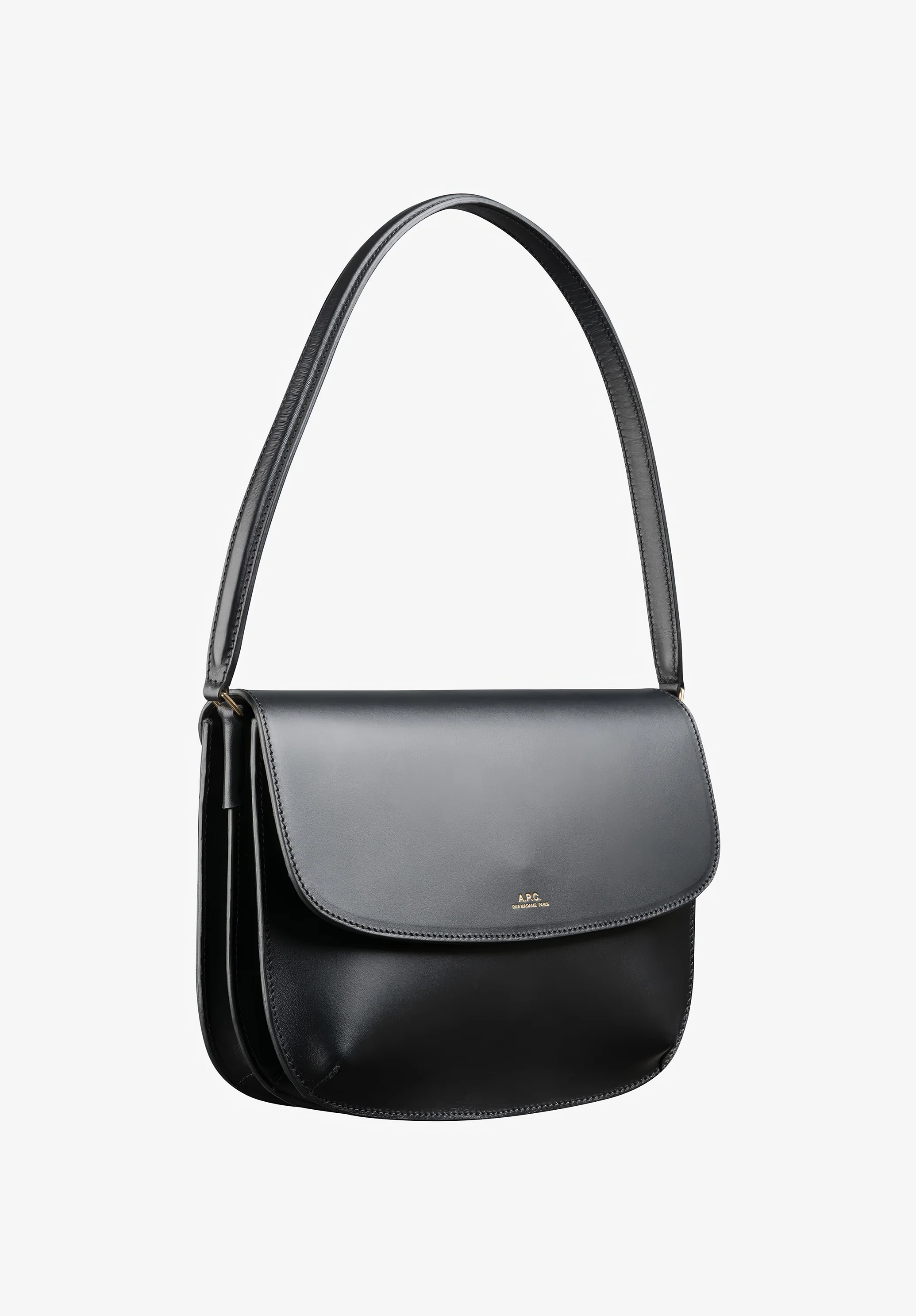 - Embossed goldtone 'A.P.C. Rue Madame Paris' logo.